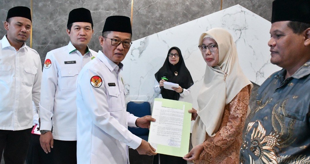 Kakanwil Kemenag Sumsel, Syafitri Irwan, melantik 12 Kepala Madrasah dan dua pejabat fungsional di Aula Kanwil Kemenag Sumsel, Selasa (14/4/2026) pagi. Acara berlangsung khidmat dengan dihadiri Kepala Bagian Tata Usaha Taufiq, para Kepala Bidang dan Pembimas, Kakankemenag Kabupaten/Kota, serta Ketua Tim Kerja Kanwil Kemenag Sumsel.