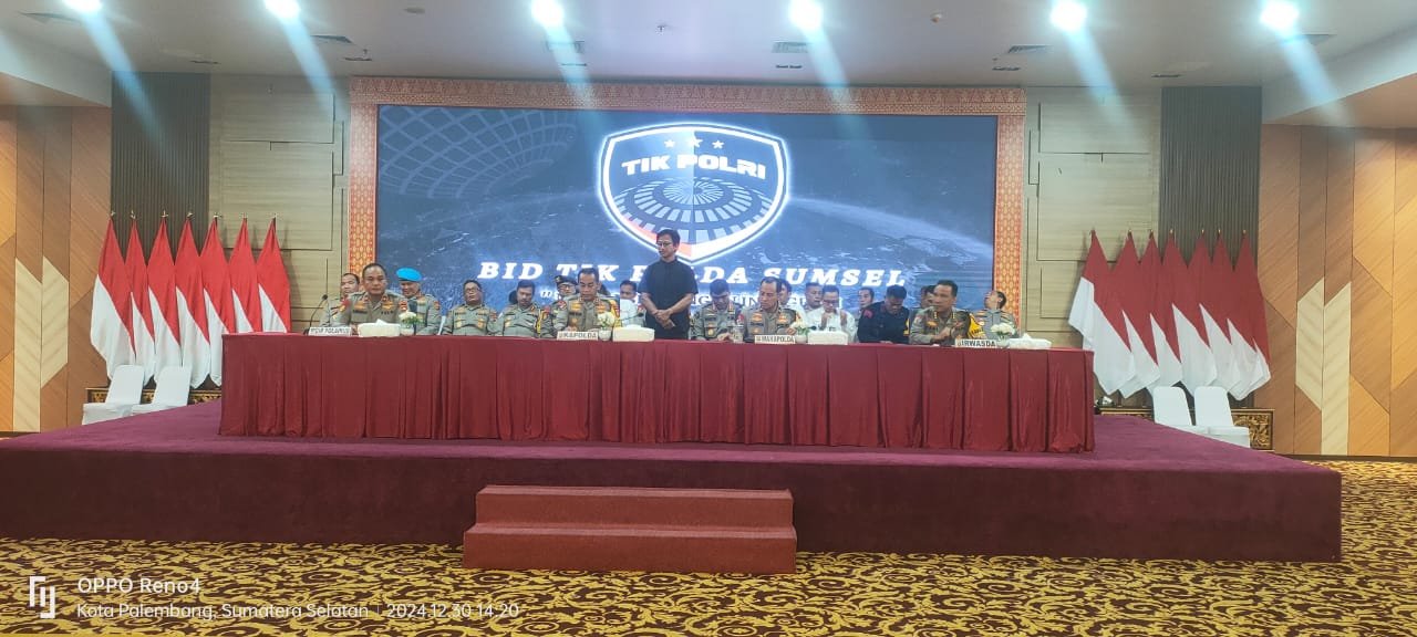 Kapolda Sumsel, Irjen Pol Andi Rian R Djajadi menyampaikan pres rilis akhir tahun 2024 didampingi Pejabat Utama Polda Sumsel, Senin (30/12/2024)