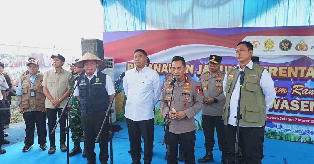 Kapolri Jenderal Polisi Drs. Listyo Sigit Prabowo, M.Si. memimpin langsung kegiatan Tanam Raya Jagung Kuartal I Tahun 2026 di Kabupaten Ogan Ilir, Sumatera Selatan, Sabtu (7/3/2026). Pada kesempatan tersebut, Kapolri juga meresmikan pembangunan 57 Jembatan Merah Putih Presisi yang dibangun oleh Polda Sumatera Selatan bersama jajaran Polres di berbagai wilayah.