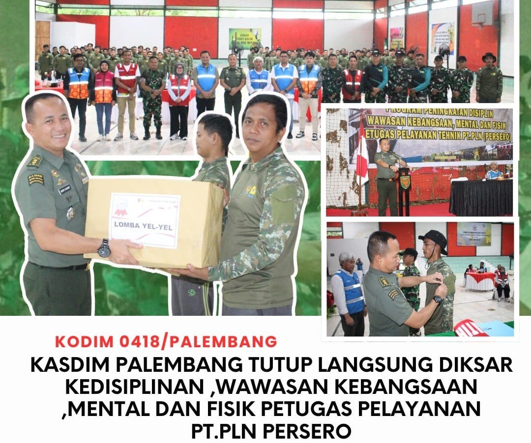 Kodim palembang Berkerja sama bersama PT PLN (Persero) Melaksanakan Program Peningkatan Disiplin, Wawasan Kebangsaan, Mental dan Fisik bagi Petugas Pelayanan Teknik PT PLN (Persero) resmi ditutup oleh Kasdim 0418/Palembang Letkol Inf Dery Septriandi, S.T., M.M., M.Han yang mewakili Dandim, Kamis (12/2/2026).