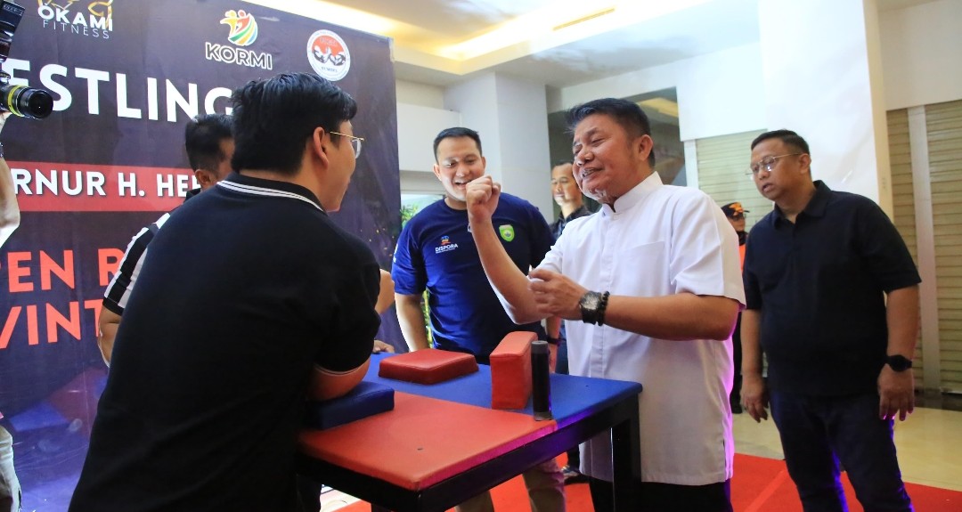 Kejuaraan Arm Wrestling 2025 Piala Gubernur Sumsel resmi dibuka oleh Gubernur Dr. H. Herman Deru di Mal Transmart Palembang, Minggu (16/11/2025). Event ini mempertemukan puluhan atlet dari berbagai daerah, termasuk satu kontingen dari Malaysia yang menambah warna pada kompetisi.