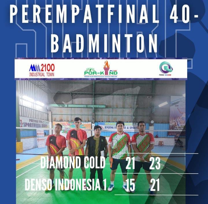 Kendati demikian terlihat dari pantauan awak media berita fakta news ajang pergelaran turnamen dari cabang olah raga bulu tangkis (Badminton) mempertemukan pertandingan antara PT. Diamond Cold Storage (Bakery Division), Menjamu PT. Denso Indonesia 1, yang mana pergelaran kick off tersebut memasuki babak perempat final dilangsungkan kemarin malam, pukul 19.00WIB Pada Senin (7/8/2023).