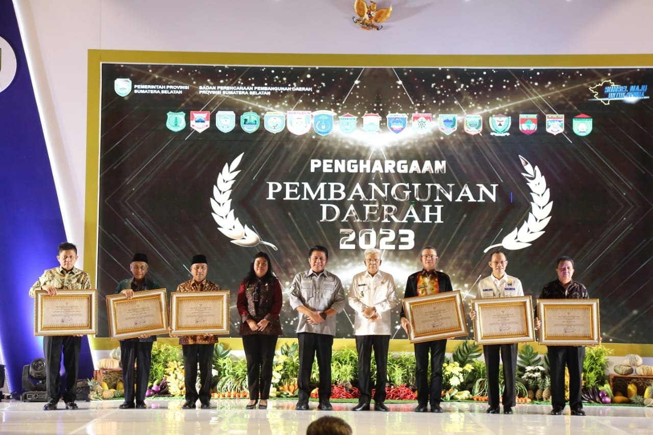 Pada kesempatan ini Gubernur Herman Deru menyerahkan penghargaan pembangunan daerah kepada 6 Kabupaten/Kota terbaik diantaranya Kabupaten OKU Timur, Banyuasin dan MUBA. Serta Kota Pagaralam, Palembang dan Prabumulih.