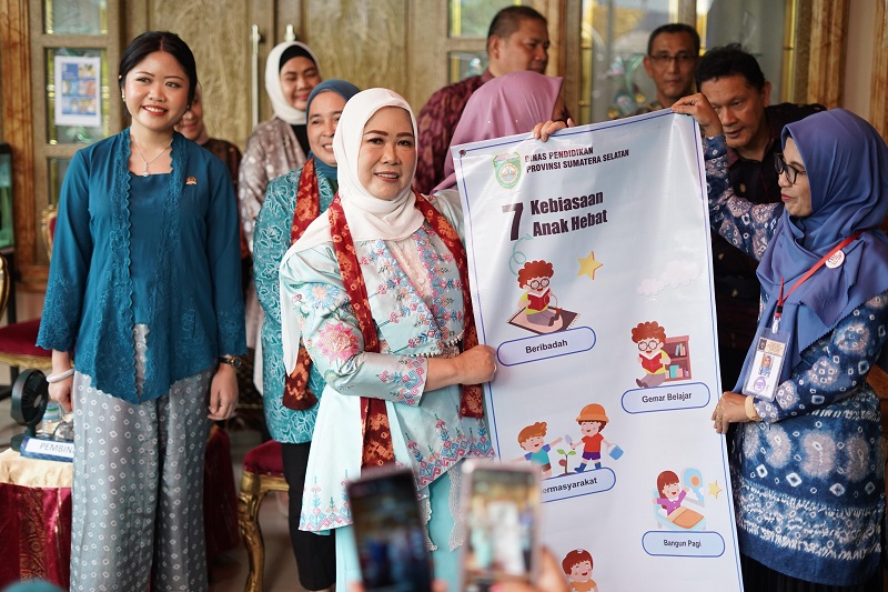 Ketua Tim Penggerak (TP) Pemberdayaan dan Kesejahteraan Keluarga (PKK) sekaligus Pembina Pos Layanan Terpadu (Posyandu) Provinsi Sumatera Selatan (Sumsel) Hj Febrita Lustia HD didampingi Ketua TP PKK Kota Palembang Hj Dewi Sastrani RD memberikan Pembinaan kepada 2 Posyandu di Kota Palembang, Sabtu (17/5/2025).