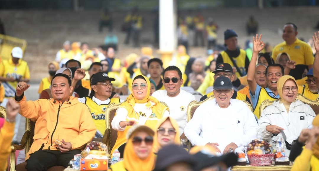 Hadir dalam Senam sehat Calon Gubernur Sumsel H. Mawardi Yahya, Cawagub Sumsel Anita Noeringhati, Ketua DPD Golkar Sumsel dan jajarannya serta Anggota DPRD Sumsel dari Partai Golkar.