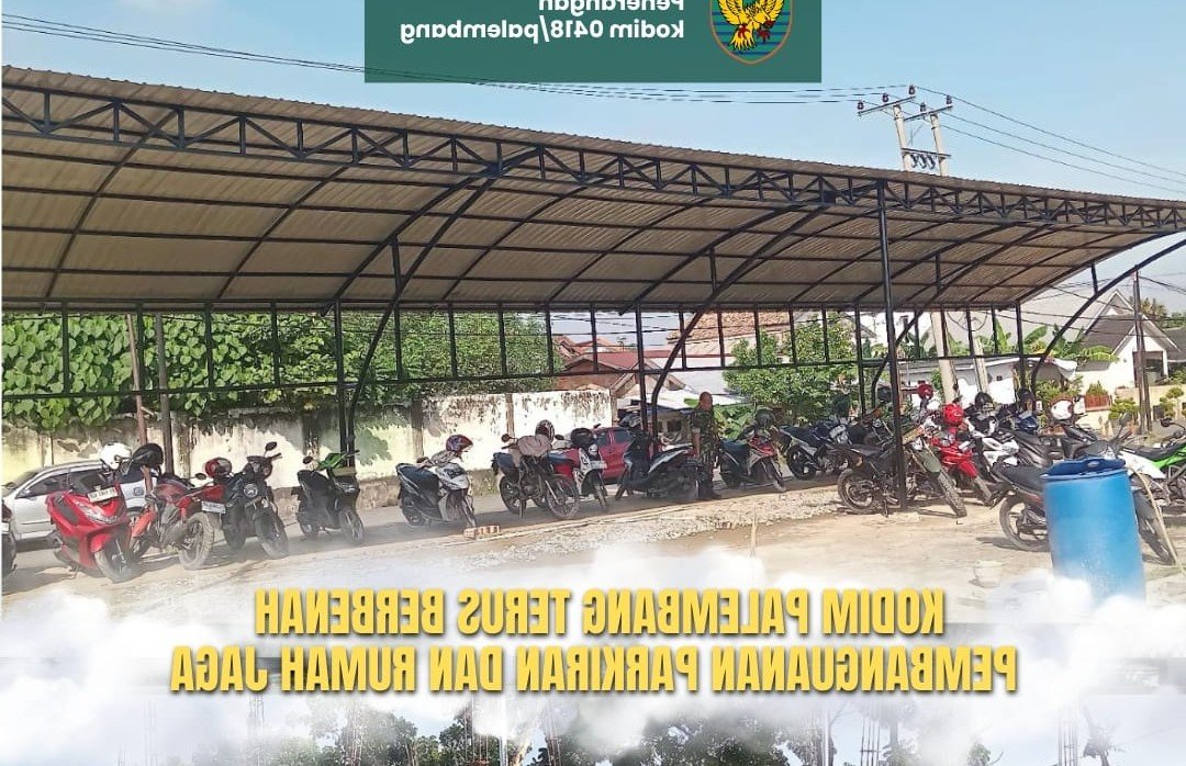 Progres pembangunan fasilitas di lingkungan Kodim 0418/Palembang terus menunjukkan perkembangan signifikan. Sejumlah sarana seperti area parkir, rumah jaga, pos jaga, dan pembangunan aula/gedung serbaguna kini mulai terlihat hasilnya.
