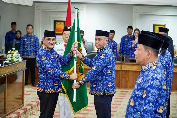 Sekretaris Daerah (Sekda) Provinsi Sumatera Selatan (Sumsel) Drs H Edward Candra MH yang dalam hal ini juga sebagai Ketua BP Korpri Sumsel melakukan Pengukuhan Pengganti Antar Waktu (PAW) Dewan Pengurus Korpri Kota Palembang masa bakti 2022/2027 bertempat di Ruang Rapat Parameswara Kantor Walikota Palembang, Senin (17/2/2025).