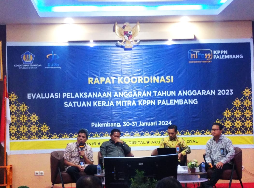 Mengingat pentingnya penyerapan anggaran dalam menggerakkan perekonomian bangsa, maka perlu dilakukan berbagai langkah untuk mendorong percepatan penyerapan anggaran, demikian diutarakan Kepala Kantor Pelayanan Perbendaharaan Negara (KPPN) Palembang Edy Prayitno saat sambutan di dalam acara Rapat Koordinasi (Rakor) evaluasi pelaksaan anggaran Tahun Anggaran 2023 Satuan Kerja (Satker) Mitra KPPN Palembang.