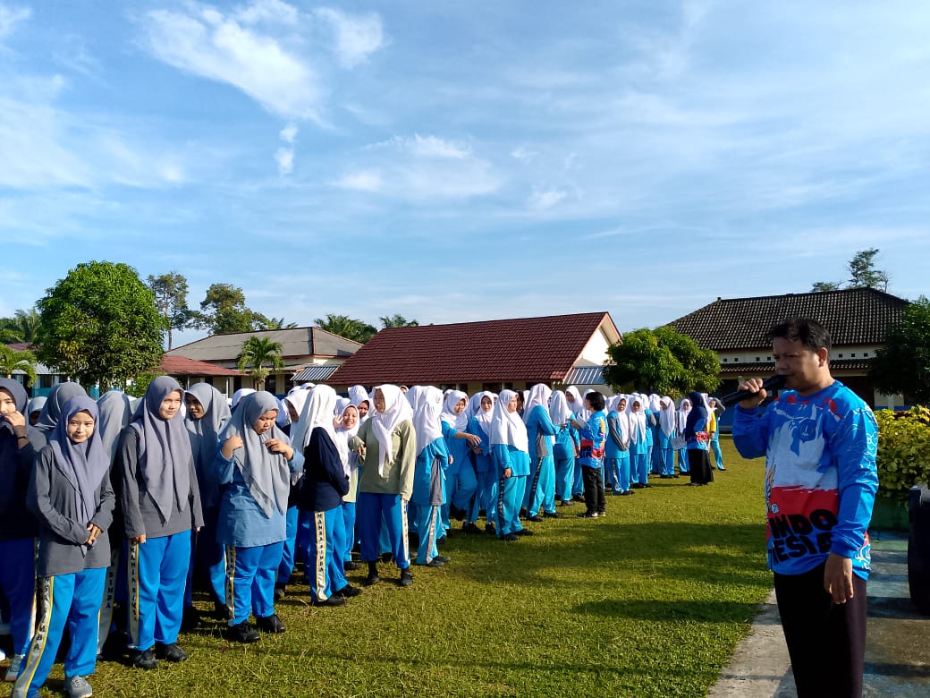 Sebelum acara jalan sehat dimulai para siswa dikumpulkan terlebih dahulu dilapangan upacara untuk diberikan arahan oleh wakil kesiswaan yaitu Anasir S.Pd.