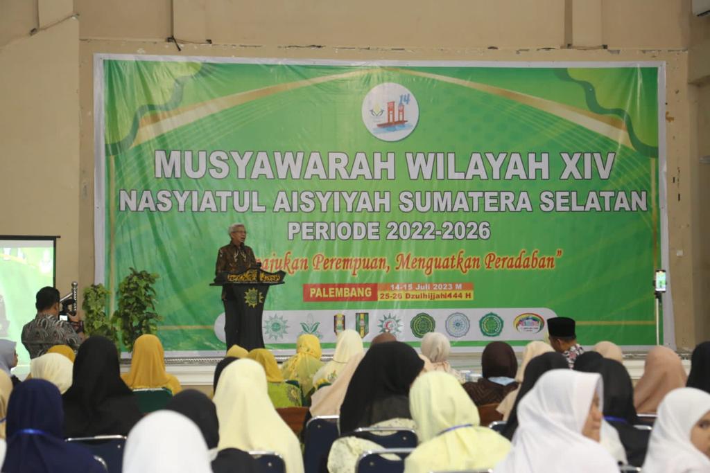 Wakil Gubernur Sumsel H Mawardi Yahya menghadiri Musyawarah Wilayah (Muswil) XIV Nasyiatul Aisyiyah Sumsel Periode 2022-2026 di Auditorium Kampus Universitas Muhammadiyah Palembang (UMP), Jumat (14/7).