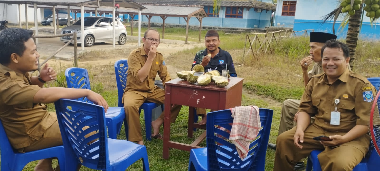 Berbagai macam durian dari bapak ibu guru pun disajikan. Pengawas provinsi kepulauan Bangka Belitung Faurani, S.Pd tampak menikmati buah durian yang disajikan sambil berbincang santai. Begitu juga dengan Kepsek Smansa Simba Yudi Sapriyanto S. Pd yang tampak santai memakan durian bersama beberapa guru lain nya.