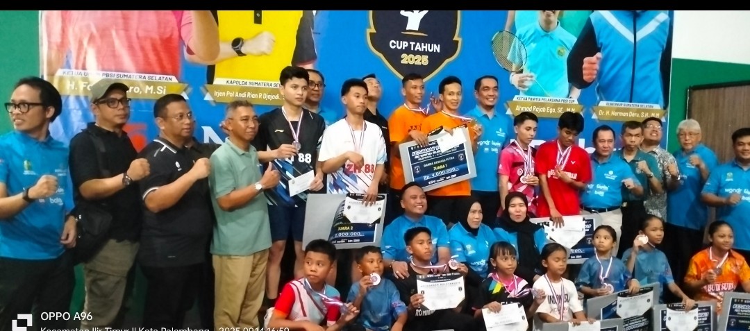 Kejuaraan Bulutangkis PBSI Sumatera Selatan Cup 2025 resmi ditutup pada Minggu (14/9/2025) di GOR Drs. Warsito, Pakri, Palembang. Penutupan berlangsung meriah dengan dihadiri berbagai tokoh penting, baik dari pemerintah, forkopimda, hingga pihak sponsor.