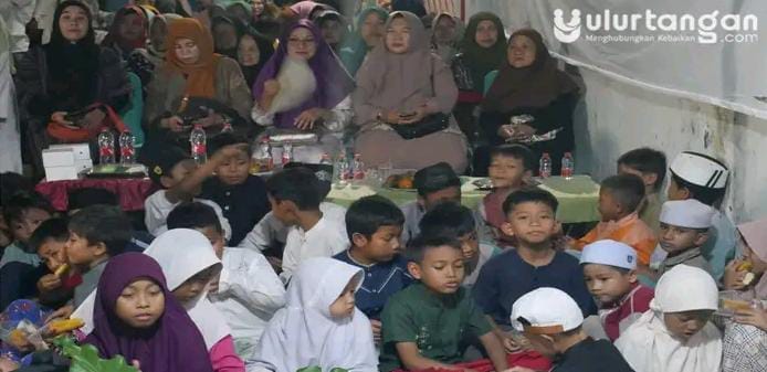 Santunan tersebut diserahkan langsung oleh pembina Yayasan UlurTangan Hj. Khusnul Khatimah kepada puluhan anak yatim yang hadir.
