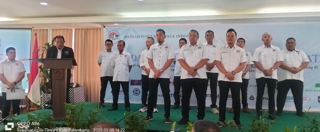 Musyawarah Daerah 1 Asosiasi Pengusaha Truk Indonesia (Musda APTRINDO) Sumsel Tahun 2025 dilaksanakan di Sintesa Peninsula Hotel ,Kamis (8/5/2025).