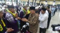 Pj Gubernur Agus Fatoni Sambut Kepulangan 450 Jamaah Haji Kloter I Embarkasi Palembang