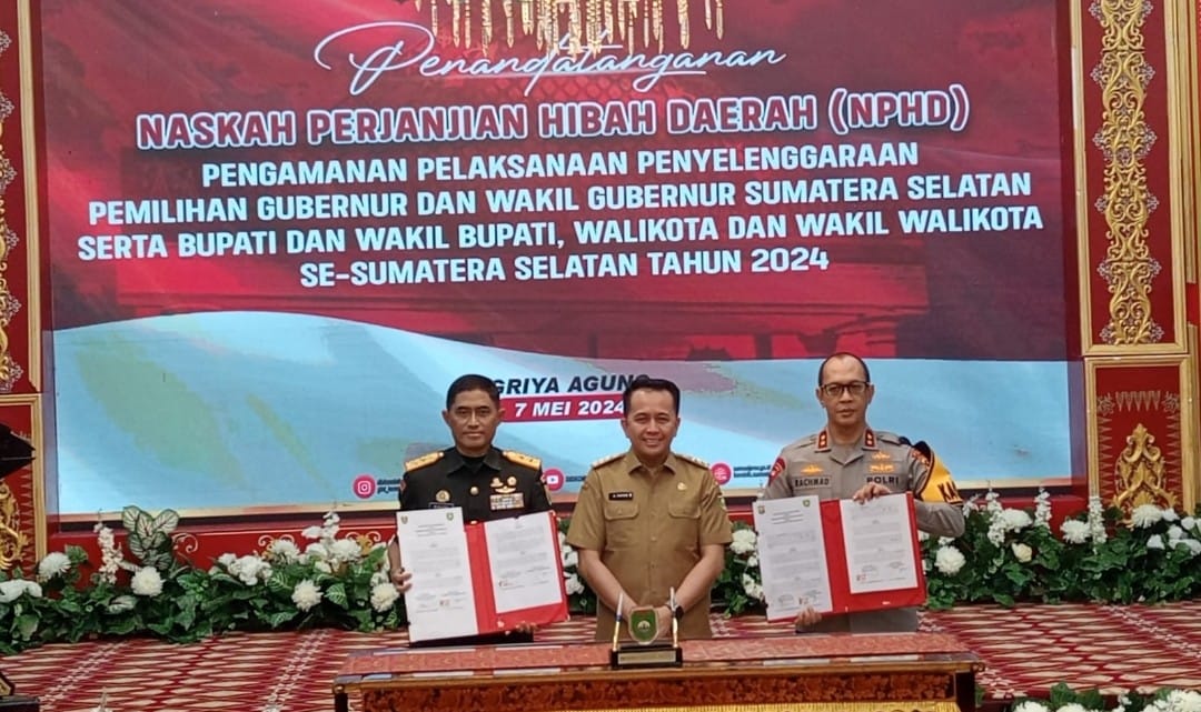 Jelang pelaksanaan Pemilihan Kepada Daerah (Pilkada) serentak pada tanggal 27 November 2024 mendatang di provinsi Sumatera Selatan (Sumsel) maka dilakukan Penandatangan Naskah Perjanjian Hibah Daerah (NPHD).