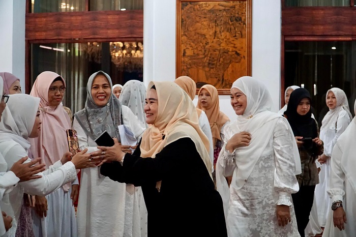 Penasihat Dharma Wanita Persatuan (DWP) Provinsi Sumatera Selatan (Sumsel) Melza Elen Setiadi menggelar pengajian bagi ASN di lingkungan Sekretariat Daerah (Setda) Sumsel, bertempat di Griya Agung Palembang, Jumat (25/10/2024) pagi.