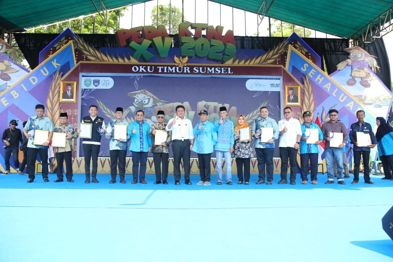 Gubernur Sumsel H Herman Deru secara resmi membuka Pekan Daerah (Peda) ke XV Kontak Tani Nelayan Andalan (KTNA) Provinsi Sumsel yang dipusatkan di Lapangan Koni Gumawang BK X Belitang OKU Timur, Rabu (10/5).