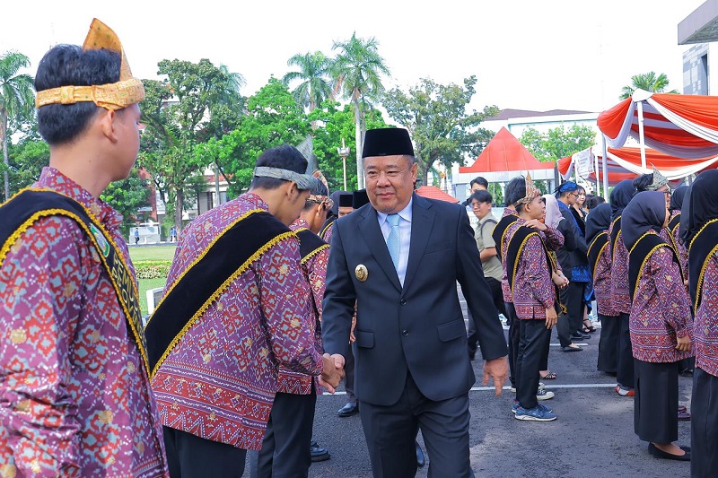 Wakil Gubernur Sumatera Selatan (Sumsel) H. Cik Ujang bertindak sebagai inspektur upacara (Irup) pada peringatan Hari Sumpah Pemuda (HSP) ke-97 Tahun 2025 yang berlangsung di halaman Kantor Gubernur Sumsel, Selasa (28/10/2025) pagi. Dalam kesempatan tersebut, Wagub membacakan amanat Menteri Pemuda dan Olahraga (Menpora) Republik Indonesia, Erick Thohir.