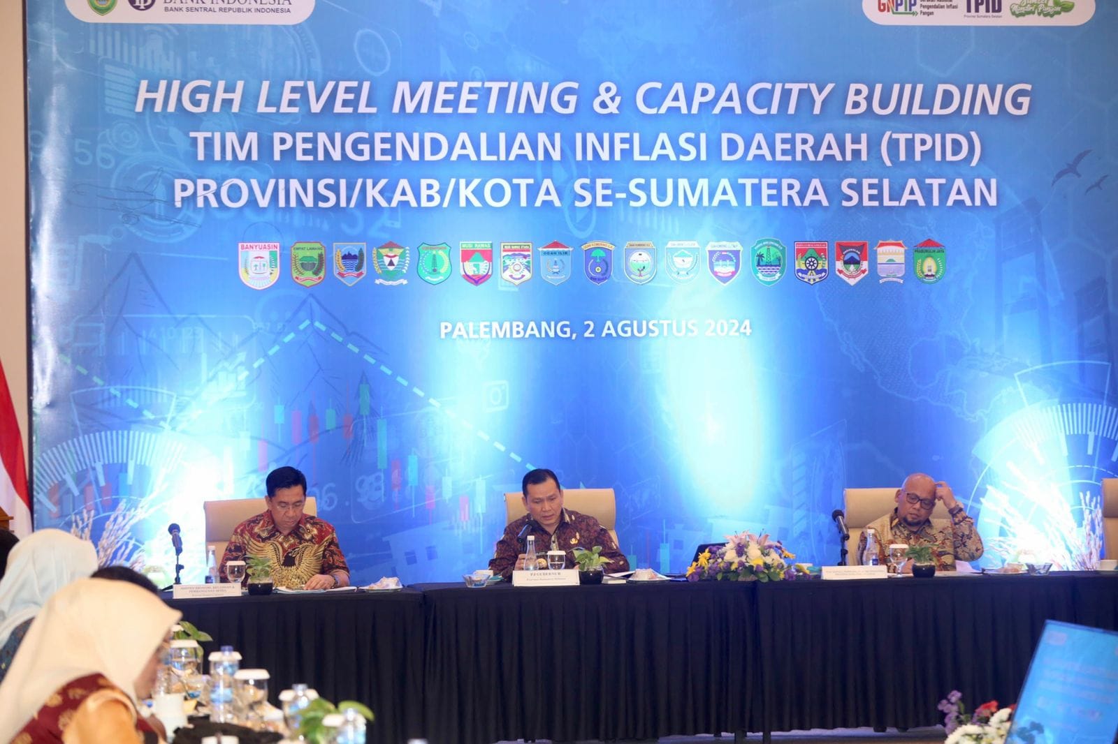 Penjabat (Pj) Gubernur Sumatera Selatan (Sumsel) Elen Setiadi, S.H. M., S.E, memimpin High Level Meeting and Capacity Building Tim Pengendalian Inflasi Daerah (TPID) Provinsi/Kab/Kota se-Sumsel di Hotel Wyndham Jakabaring Palembang, Jumat (2/8/2024) sore.