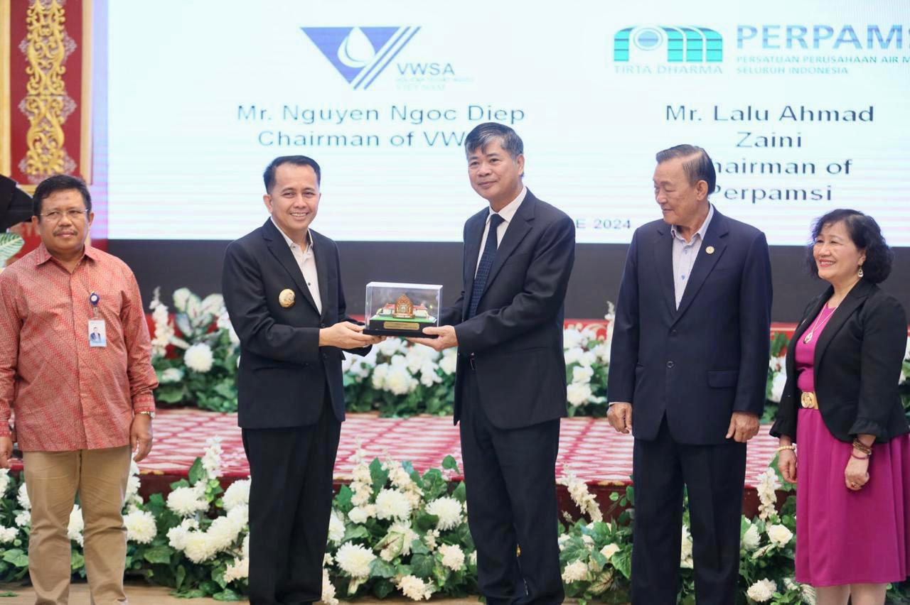 Pemerintah Provinsi Sumatera Selatan (Sumsel) bersama delegasi Vietnam Water Supply and Sewerage Association (VWSA) melakukan kerjasama dalam bidang industri air minum. Kerjasama ini ditandai dengan penandatanganan nota kesepahaman bersama atau Memorandum of Understanding (MoU) antara Penjabat (Pj) Gubernur Sumsel Agus Fatoni dan Chairman VWSA Nguyen Ngoc Diep di Griya Agung, Palembang, Sumatera Selatan, Sabtu (22/6/2024).