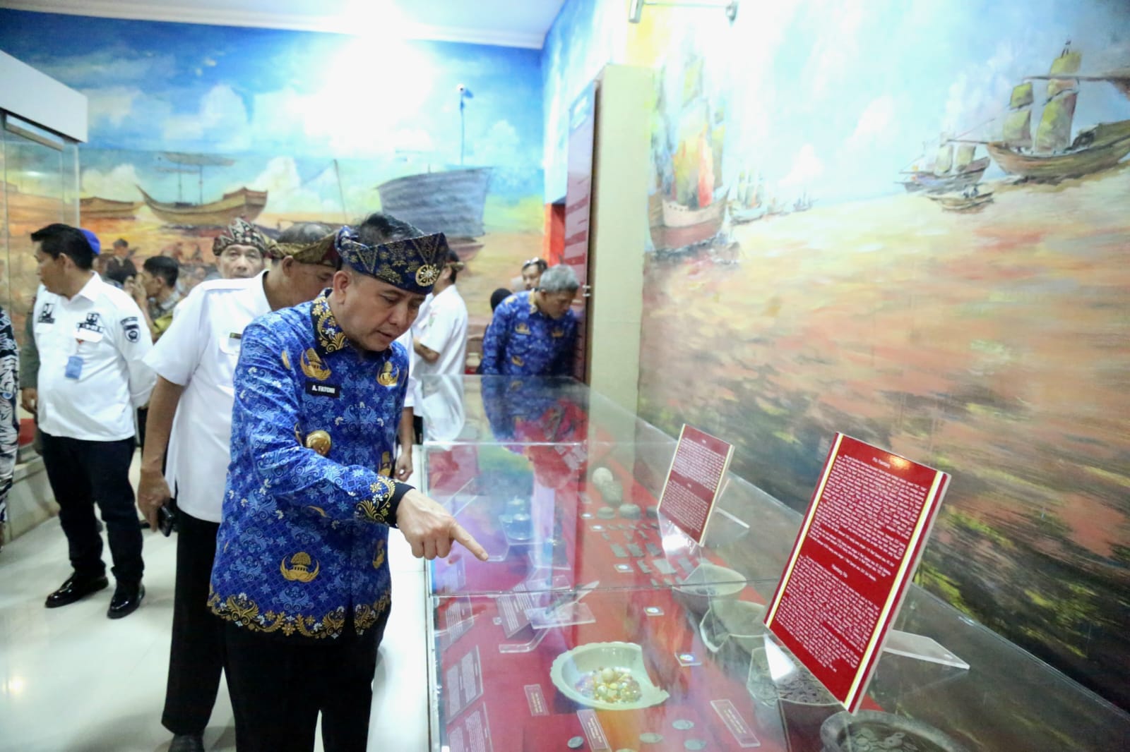 Penjabat (Pj) Gubernur Sumatera Selatan (Sumsel) Agus Fatoni meninjau Museum Negeri Sumatera Selatan Balaputra Dewa dan Museum Taman Purbakala Kerajaan Sriwijaya (TPKS). Kedua museum tersebut berlokasi di Palembang, Sumatera Selatan, Rabu (17/4/2024).