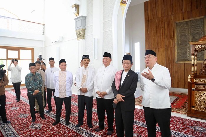 Penjabat (Pj) Gubernur Sumatera Selatan (Sumsel) Elen Setiadi, S.H., M.S.E mendampingi Menteri Agama Republik Indonesia (RI) Prof. Dr. K.H Nasaruddin Umar, MA meresmikan Masjid Al-Abduh yang didirikan oleh Kapolda Riau Irjen. Pol. Mohammad Iqbal, S.I.K., MH yang berlokasi di Jl. Sunama No 01, RT 16, Kelurahan Sukamulya, Kecamatan Sematang Borang Palembang, Sabtu (21/12/2024).