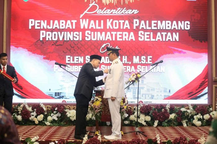 Pelantikan Pj Walikota Palembang Dr. Cheka Virgowansyah dilakukan sesuai dengan Keputusan Menteri Dalam Negeri Republik Indonesia (RI) Nomor 100.2.1.3-4857 Tahun 2024 tanggal 26 November 2024.