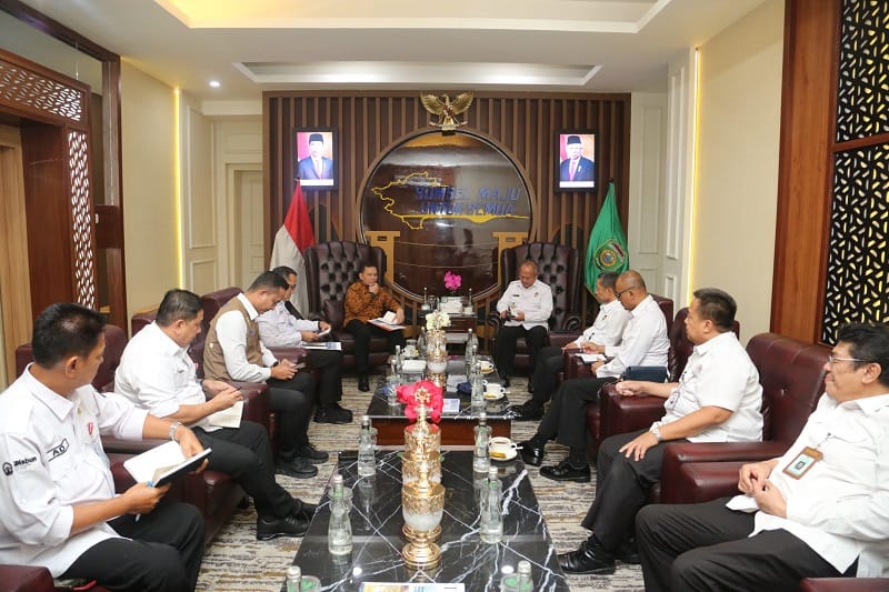 Penjabat (Pj) Gubernur Sumatera Selatan (Sumsel) Elen Setiadi S.E. M.S.E menerima Tim On The Spot (OTS) Dewan Ketahanan Nasional (Wantannas) RI dalam rangka Pelaksanaan Kajian Daerah untuk Penguatan Ketahanan Nasional bertempat di Ruang Tamu Kantor Gubernur Sumsel, Rabu (26/6/2024).