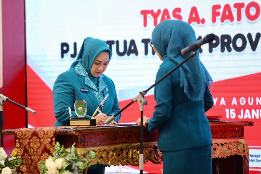 “Terima kasih kepada Ibu Ketua PKK sebelumnya yang telah bekerja keras bersinergi bersama-sama dengan PKK Provinsi dengan PKK pusat dan seluruh stakeholder, telah menjalankan tugas dengan sebaik-baiknya dan mudah-mudahan Pj Ketua PKK yang baru dapat melanjutkan,” ucap Fatoni.
