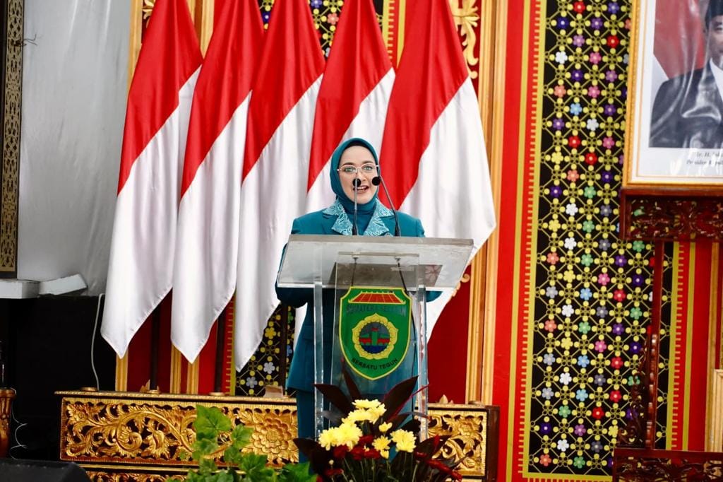 “Setelah saya menyimak paparan dari masing-masing TP PKK Kabupaten/Kota, 9 persen program kerja TP PKK baik di tingkat provinsi hingga tingkat daerah sudah tersinkronisasi. Saya apresiasi untuk kita semua. Sedangkan 10 persen lagi merupakan inovasi dari masing-masing TP PKK Kabupaten/Kota,” ucap Tyas.