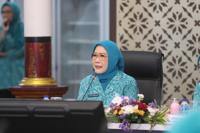 Ketua Tim Penggerak (TP) Pemberdayaan Kesejahteraan Keluarga (PKK) Provinsi Sumatera Selatan (Sumsel) Hj Febrita Lustia HD membuka secara resmi Rapat Koordinasi (Rakor) TP PKK Sumsel yang dirangkaikan juga dengan rakor Tim Pembina Posyandu, Dekranasda dan Perwosi Sumsel, bertempat di Rumah Dinas Gubernur Griya Agung Jalan Demang Lebar Daun Palembang, Kamis (24/4/2025).