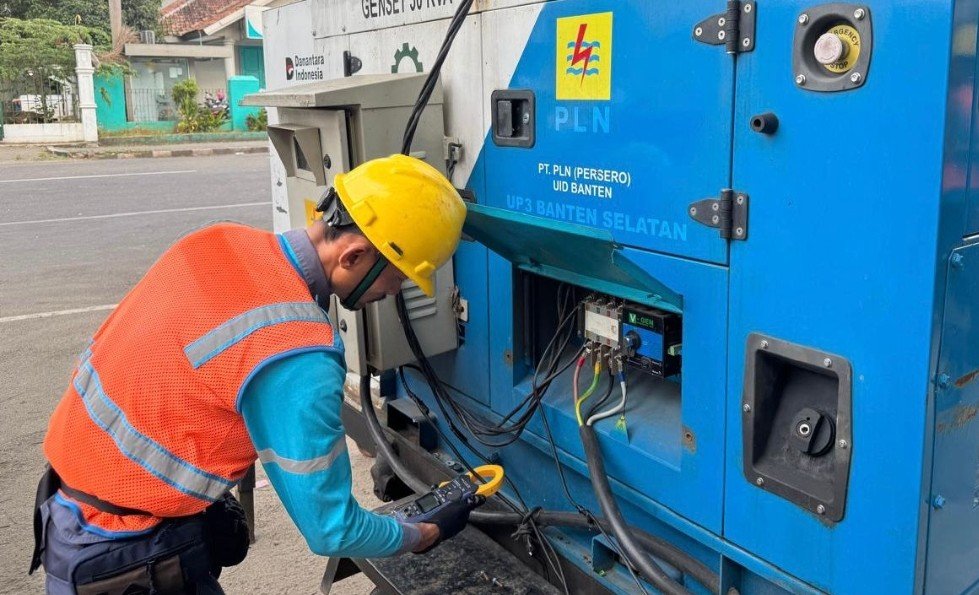 Caption foto : Petugas PLN saat melakukan pengecekan genset di Masjid Agung Al A’raaf, Rangkasbitung, Lebak, Banten. Langkah ini menjadi bagian dari pengamanan berlapis untuk mendukung kelancaran pelaksanaan Salat Idulfitri 1447 H.