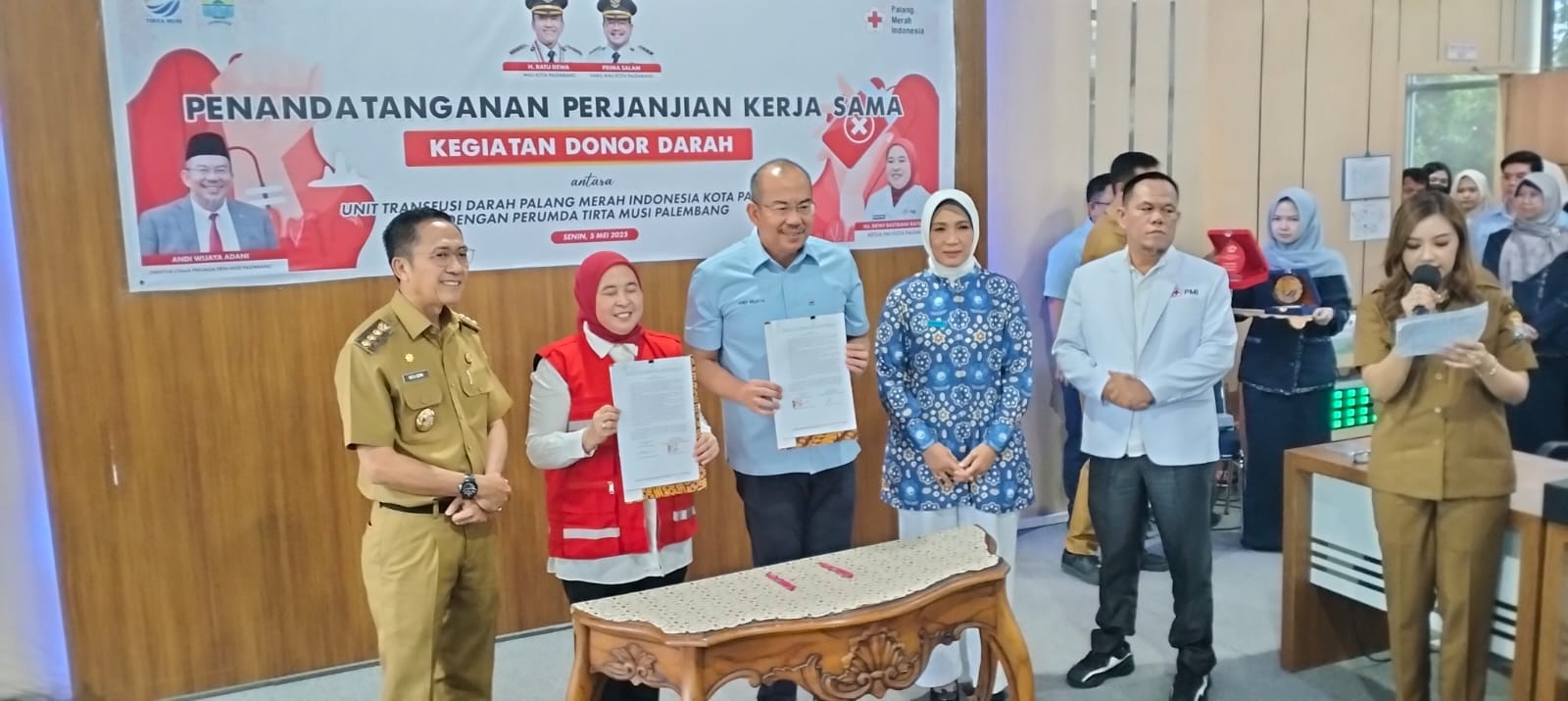 PMI Kota Palembang menggandeng Perumda Tirta Musi dalam upaya meningkatkan ketersediaan stok darah di kota Palembang. Kolaborasi itu diwujudkan melalui penandatanganan nota kesepahaman (MoU) yang digelar di Graha Tirta Musi, Jalan Rambutan Ujung No. 1, Kelurahan 30 Ilir, Senin (5/5/2025).