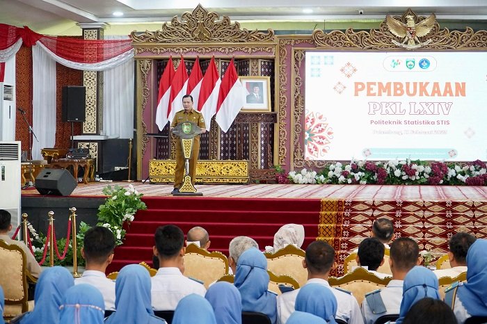 Penjabat (Pj) Gubernur Sumatera Selatan (Sumsel) Elen Setiadi, S.H., M.S.E membuka Praktek Kerja Lapangan (PKL) LXIV Politeknik Statistika STIS bertempat di Griya Agung Palembang, Selasa (11/2/2025).