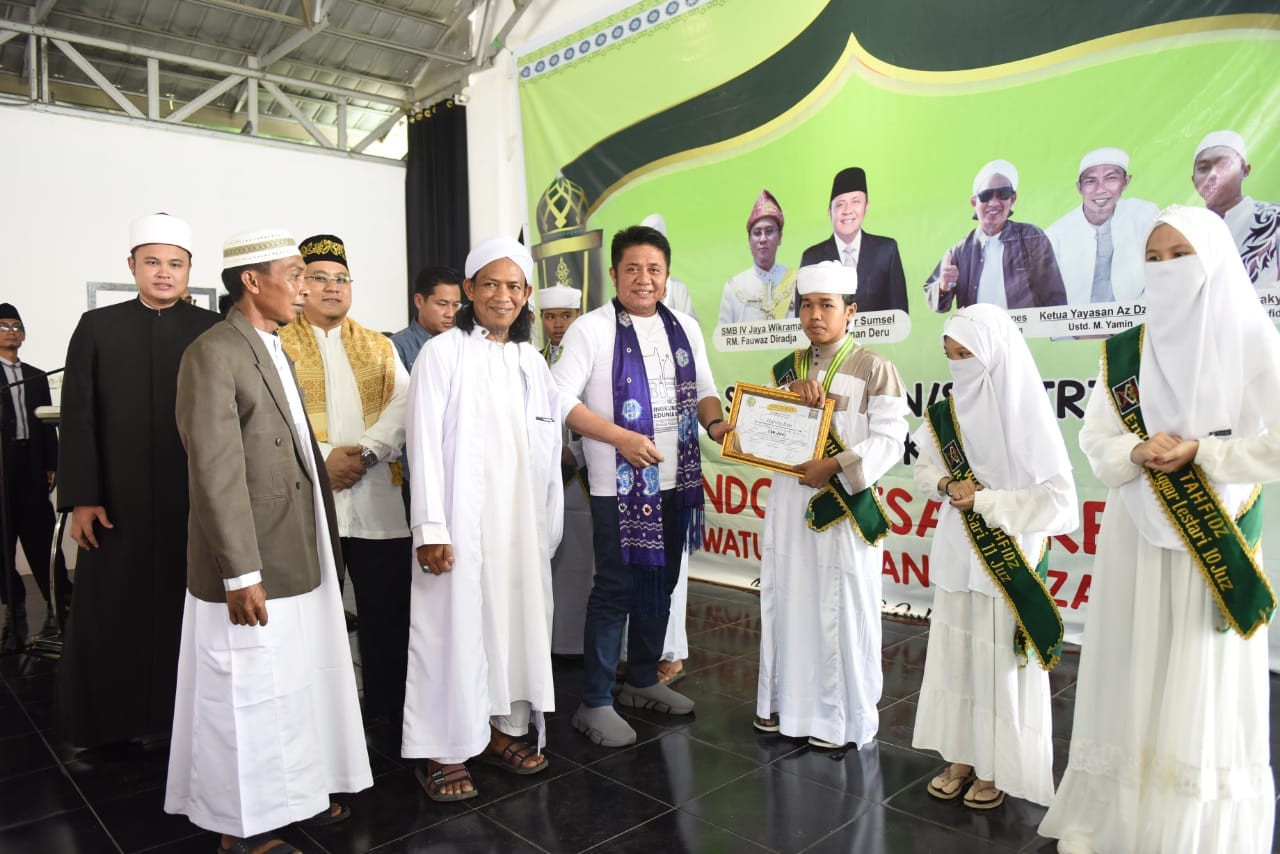 Dalam kesempatan itu Gubernur Sumsel Herman Deru juga menyerahkan penghargaan kepada 5 santri yang telah berhasil menghafal Quran 30 juz. Iapun berharap metode menghafal Al Quran yang begitu cepat di Ponpes Dakwatul Quran Az-Dzaky dapat dikenalkan ke lembaga lainnya sehingga akan lahir banyak hafidz Al- Qur’an di Sumsel.