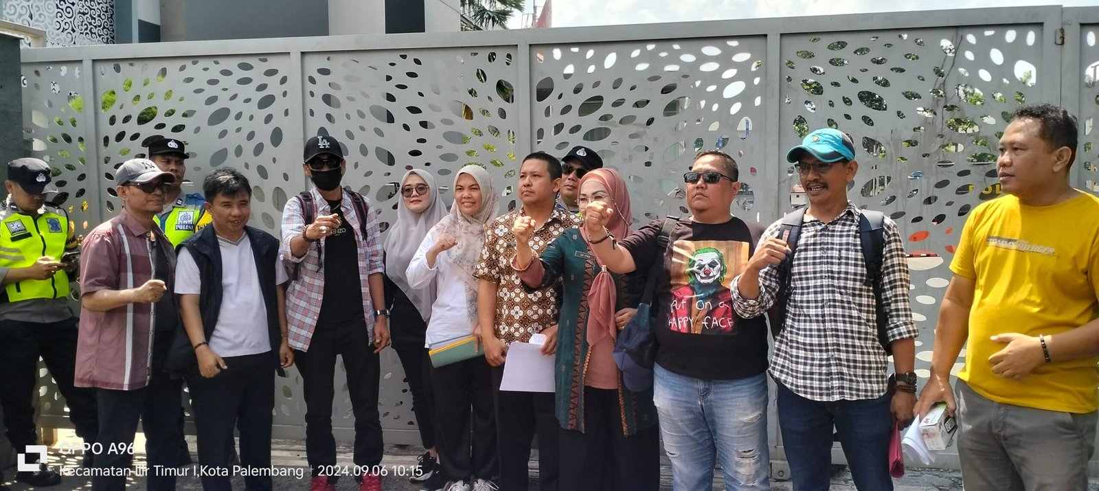 Presidium Jaringan Aksi 98 menggelar aksi demo di Kantor Gubernur Sumsel, Jumat (6/9/2024). Massa aksi menuntut seluruh ASN, PJ Gubernur ,Bupati dan Walikota se Sumsel untuk menjaga netralitas dan kondusivitas sehingga Pilkada berjalan aman,tertib dan damai.