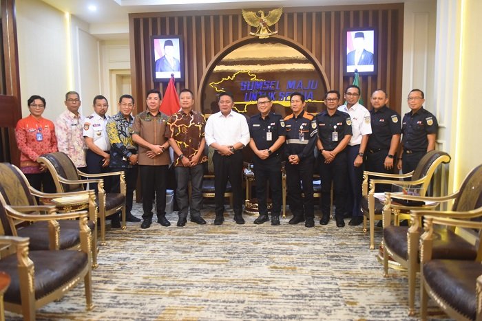 Gubernur Sumatera Selatan (Sumsel) H Herman Deru menerima audiensi Direktur Pengembangan Usaha PT. Kereta Api Indonesia (KAI) Rudi As Aturridha dan jajaran bertempat Ruang Tamu Gubernur, Kamis (6/3/2025).
