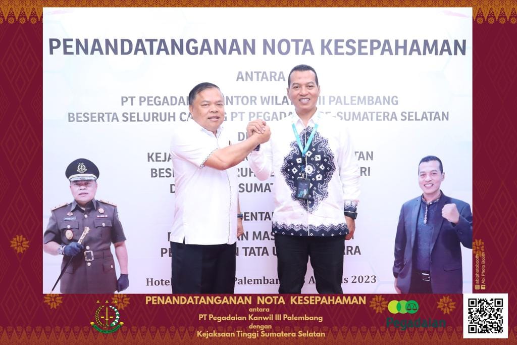 PT Pegadaian Kantor Wilayah III Sumbagsel melakukan Penandatangan Nota Kesepahaman dengan Kejaksaan Tinggi Sumatera Selatan bertempat di Wyndham Opi Palembang, Kamis 3 Agustus 2023