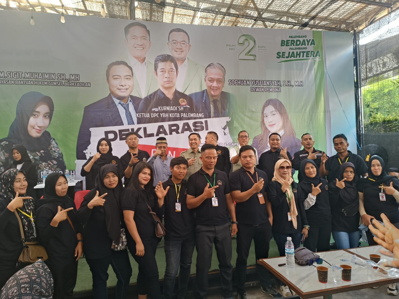 Sekitar 2.000 orang anggota dan pengurus dari Yayasan Bantuan Hukum Sumatera Selatan Berkeadilan (YBH SSB) Kota Palembang mendeklarasikan dukungan terhadap Calon Walikota dan Wakil Walikota Palembang Ratu Dewa dan Prima Salam bertempat di Union Cafe, Senin (11/11/2024).