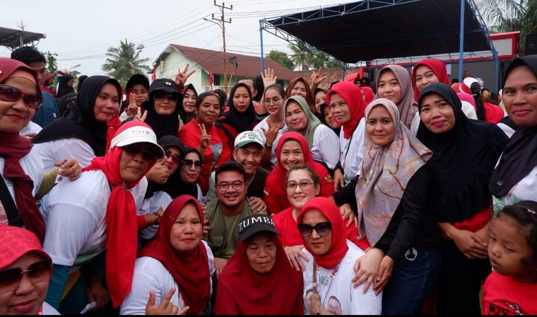 Kedatangan mereka untuk mengikuti acara senam sehat dan blusukan yang diselenggarakan oleh DPC PDI Perjuangan Kota Palembang.