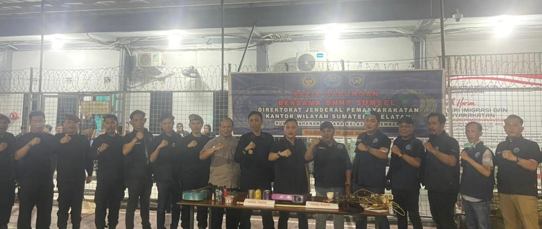 Dalam rangka mewujudkan lingkungan pemasyarakatan yang bersih dari narkoba dan barang terlarang, Rutan Kelas I Palembang melaksanakan razia gabungan pada Rabu malam (11/6) bersama Badan Narkotika Nasional (BNN) Provinsi Sumatera Selatan, Kantor Wilayah Direktorat Jenderal Pemasyarakatan (Ditjen PAS) Sumatera Selatan, serta Tim Satuan Operasional Kepatuhan Internal (Satops Patnal) Rutan Kelas I Palembang.