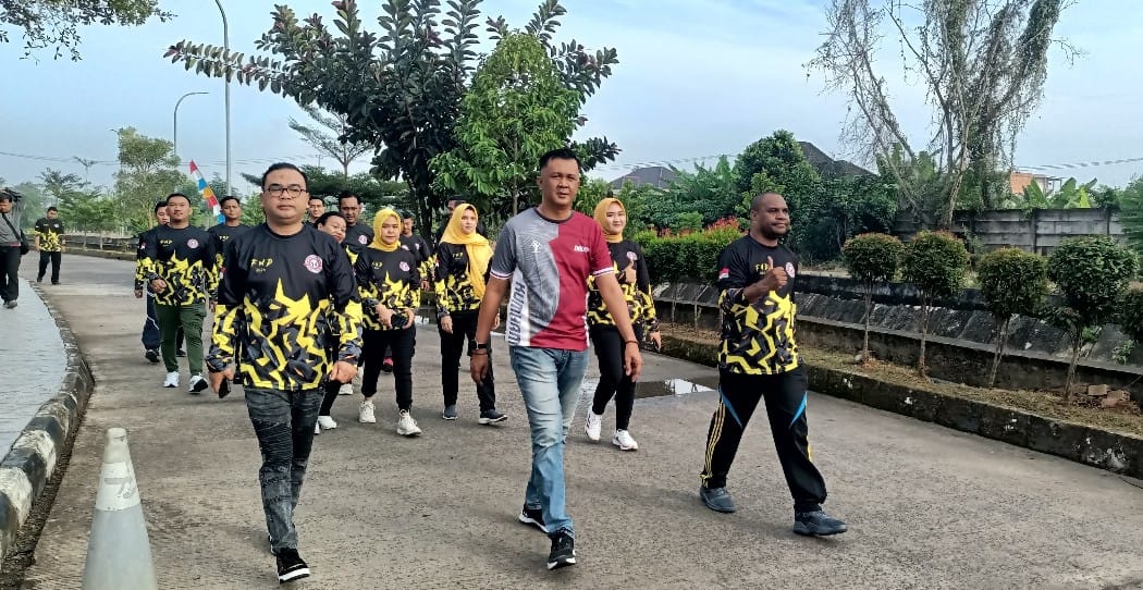 Dalam Rangka Peringatan Hari Pengayoman Ke-79 Tahun 2024, Kepala Rutan Kelas I Palembang bersama jajaran turut memeriahkan dengan mengikuti kegiatan jalan santai bersama.
