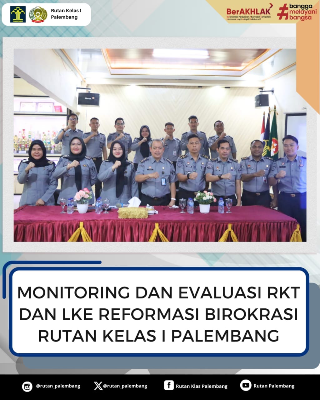 Rumah Tahanan Negara Kelas I Palembang (Rutan Kelas I Palembang), menerima kunjungan kerja Tim Program dan Humas Kantor Wilayah Kemenkumham Sumsel dalam rangka monitoring dan evaluasi Daduk RKT dan LKE Reformasi Birokrasi, Senin (09/09/2024).