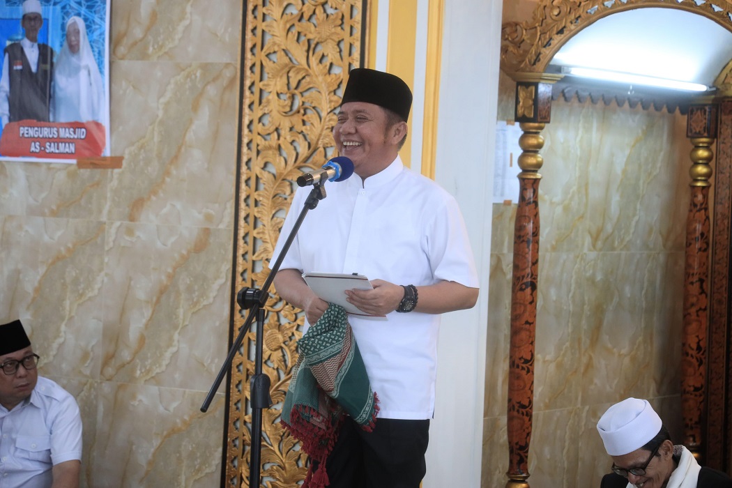 H. Cek Mat mengucapkan terimakasih kepada Gubernur Sumsel Herman Deru yang sudah bersedia datang sholat jumat berjamaah dan sekaligus meresmikan masjid As-Salman.
