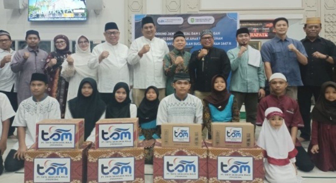 Menyambut bulan suci Ramadhan 1447 Hijriah, PT Tirta Sriwijaya Maju (Perseroda) menggelar kegiatan berbagi bersama 175 anak panti asuhan di Masjid Raya Citra Grand City, Kecamatan Alang-alang Lebar, Kota Palembang, Kamis (12/2/2026).