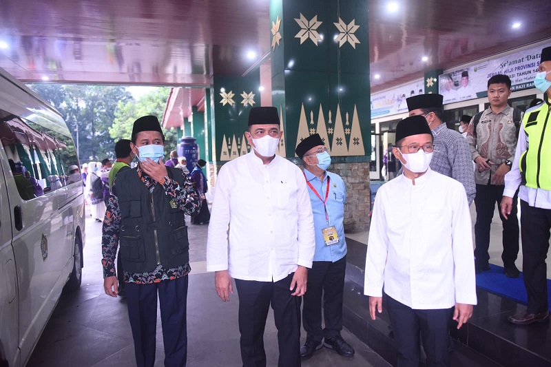 Penyambutan ini mewakili kehadiran Gubernur Sumsel H Herman Deru dalam menandai dimulainya fase pemulangan jemaah haji Embarkasi Palembang.