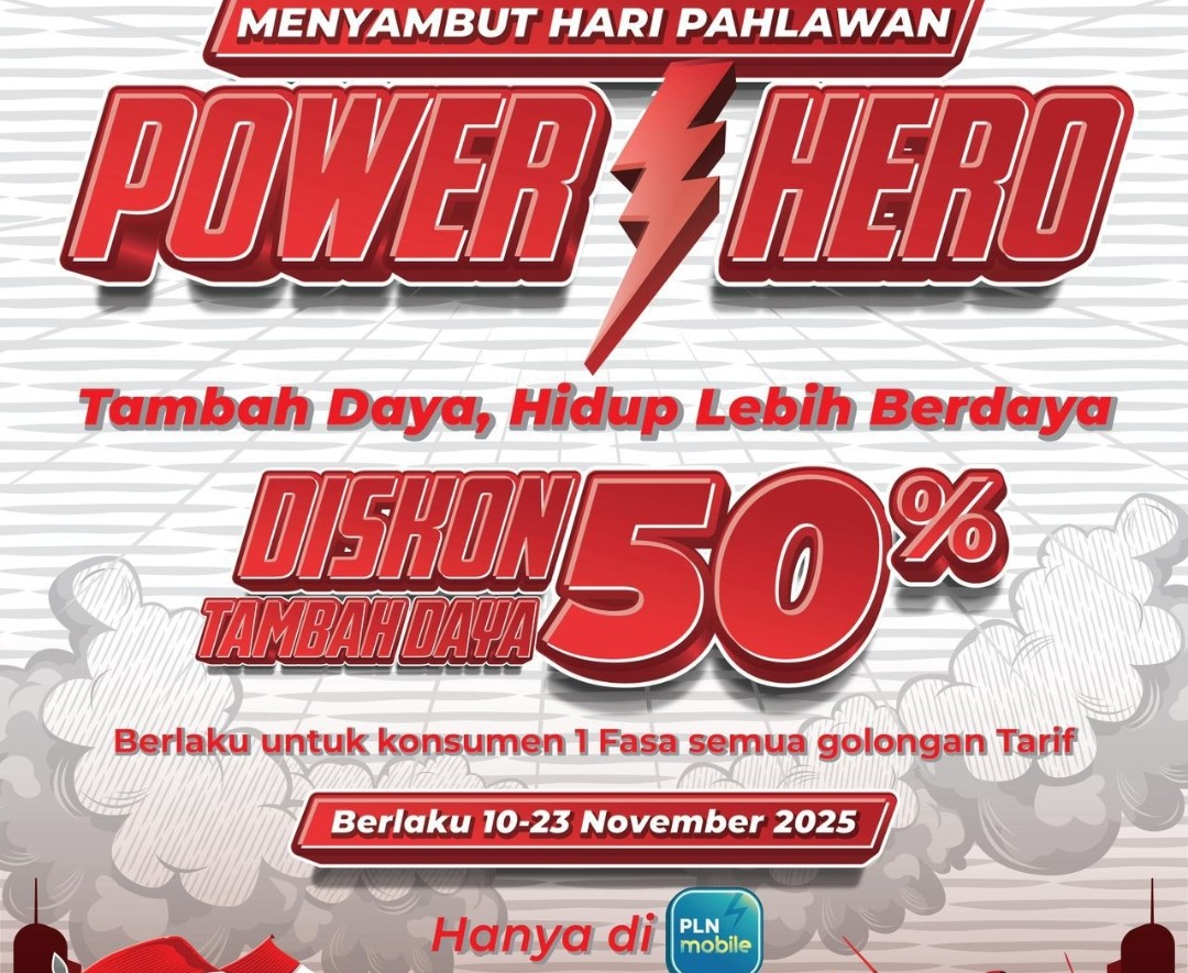Dalam semangat memperingati Hari Pahlawan 2025, PT PLN (Persero) menghadirkan program promo bertajuk “Power Hero”, yang memberikan diskon 50% untuk biaya tambah daya listrik bagi pelanggan setia. Promo ini berlangsung secara nasional mulai 10 hingga 23 November 2025 dan dapat diakses dengan mudah melalui aplikasi PLN Mobile.