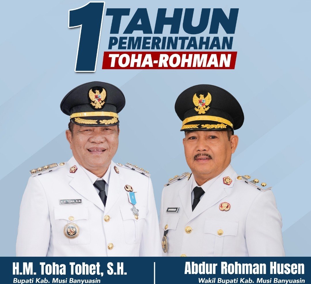 Satu tahun kepemimpinan Bupati Musi Banyuasin (Muba) Haji Toha Tohet dan Wakil Bupati Abdur Rohman Husen mencatatkan sejumlah capaian strategis. Mulai dari pelunasan utang daerah sekitar Rp350 miliar hingga penurunan angka kemiskinan dari 12,88 persen menjadi 9,97 persen pada 2025.