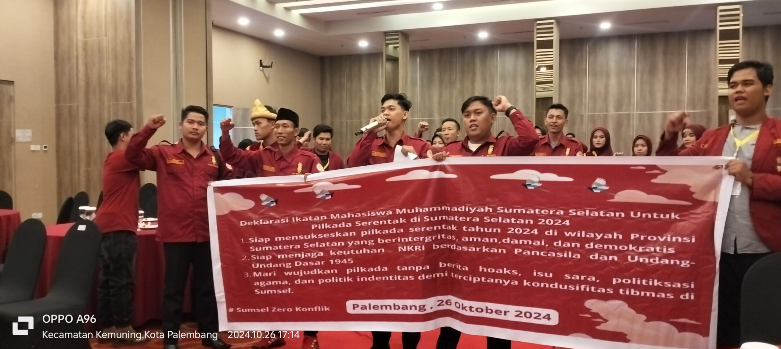 Deklarasi tersebut diikuti oleh seluruh Pengurus DPC IMM Se Sumsel. Deklarasi Ikatan Mahasiswa Muhammadiyah (IMM) Sumsel untuk Pilkada di Sumsel 2024 yakni pertama siap mensukseskan Pilkada serentak tahun 2024 di wilayah Provinsi Sumsel yang berintegritas, aman, damai dan demokratis. Kedua, siap menjaga keutuhan NKRI berdasarkan Pancasila dan Undang Undang Dasar 1945. Ketiga, Mari wujudkan Pilkada tanpa berita hoaks, isi SARA, politiksasi agama, politik identitas demi terciptanya kondusivitas tibmas di Sumsel.
